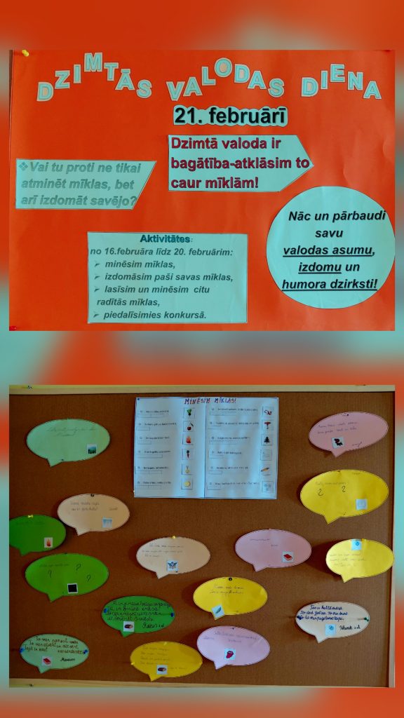 No 16. februāra līdz 20. februārim, atzīmējot Starptautisko dzimtās valodas dienu, mūsu skolā Vaidavā notika dažādas aizraujošas aktivitātes. Skolēni ar lielu interesi minēja mīklas, pārbaudot savu atjautību un valodas prasmes. Dažām mīklām atbildes bija viegli uzminamas, bet citas lika krietni palauzīt galvu. Īpašu azartu radīja mīklu konkurss, kurā skolēni sacentās komandās. Valdīja draudzīga gaisotne, skanēja smiekli un prieks par pareizi […]