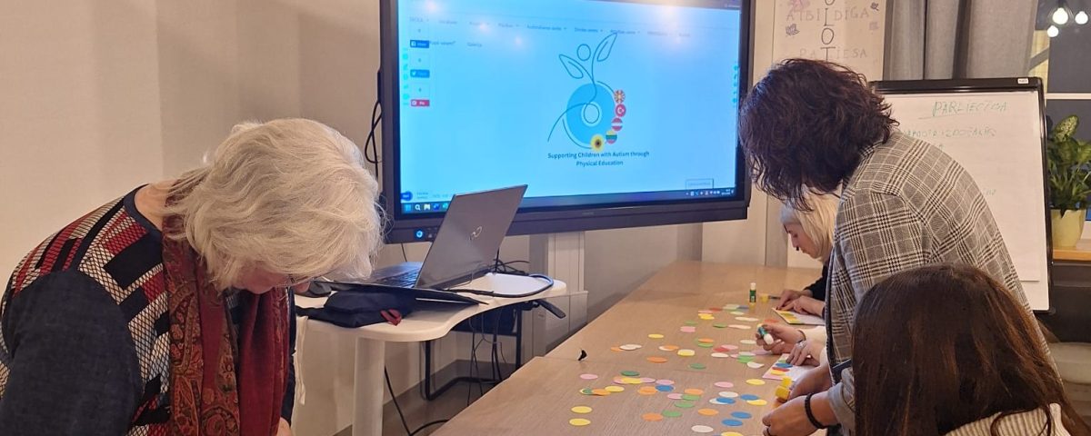 Tāpat arī kolēģiem bija iespēja piedalīties radošajā darbnīcā, kurā kopīgi tika izveidoti atbalsta materiāli bērnu ar autismu atbalstam mācību stundās.