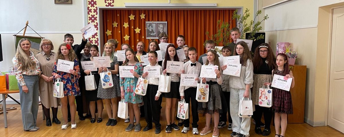 16. aprīlī mūsu skolas skolēni, Artūrs Ercenieks, Dāvids Bētaks, Mārtiņš Lapiņš, Samanta Krujele, Endija Treiliņa, Dāvis Brūns un Elza Vēberste, piedalījās dzejas konkursā Rēzeknē. Konkurss ,“ Zelta sietiņu sijājot” , veltīts Jāņa Raiņa un Aspazijas piemiņai. Skolēni pilnveidoja skatuves runas kultūru un radošo pašizpausmi. Konkursu vērtēja žūrija. Visi skolēni savu dzejoli norunàja lieliski un saņēma pateicības rakstus, veicināšanas balvas. Īpaši esam priecīgi par Dāvja Brūna 1. vietu un Artūra Ercenieka 3. vietu. Samanta Krujele saņēma žūrijas simpātiju balvu. Pēc konkursa bija ekskursija pa Austrumlatvijas radošo pakalpojumu centru “ Zeimuļs”. Radošajā centrā skolēni pagatavoja sev spēli. Uzkāpām Rēzeknes pilskalnā, papriecājāmies par skaisto panorāmas skatu uz pilsètu. Diena bija skaista, interesanta un draudzīga. Mājās pàrvedām pzitīvas emocijas dāvaniņas. Grāmata, roku lelle un ābele atgādinās mums par šo pasākumu un Latgales draugiem!